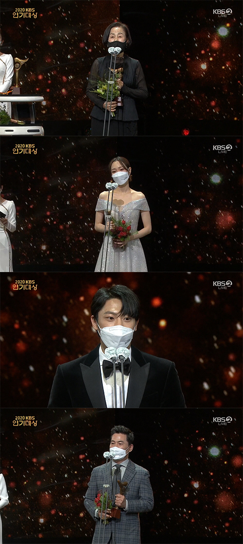 남자부분에는 이신영과 이한위가 수상했다. 이신영은 "정말 많이 부족한데 이런 뜻 깊은 상을 안겨주셔서 감사하다"라고 전했다. 이한위는 "영광이다. 캐스팅 되는 것도 영광이지만 노미네이트 되는 것은 더 쉽지 않다. 제가 83년도에 KBS를 통해 데뷔를 했다. 돌이켜보면 그때가 드라마가 정말 많았었다. 그때 지망생이던 제가 지금까지 연기를 할 수 있게 됐다. 저에겐 이게 대상이다"라고 감동적인 수상 소감을 전했다.