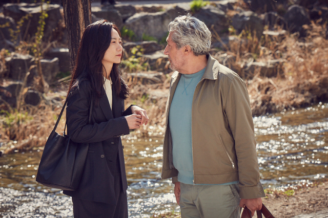 '#아이엠히어'는 프랑스의 국민 배우 알랭 샤바(스테판 분)와 월드 스타 배두나가 함께 선보일 이색 케미로 눈길을 끄는 작품이다. SNS 다이렉트 메시지를 통해 소소한 일상을 나누고 영상 통화로 서로의 안부를 묻는 스테판과 SOO의 모습은 SNS를 활발하게 활용하는 현대인들의 모습을 투영해 공감과 웃음을 전달할 예정이다. 스테판과 SOO가 벚꽃이 아름답게 핀 청계천을 나란히 걷는 장면에서는 두 배우의 케미와 함께 배두나의 유창한 불어 실력까지 확인할 수 있어 기대를 모은다.