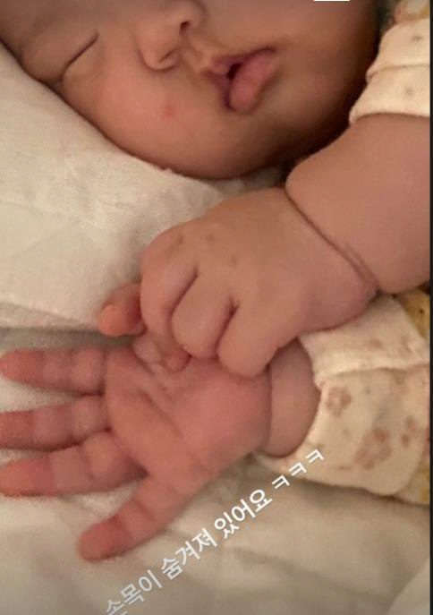 최희는 포동포동한 몸에 손목이 접혀 잘 보이지 않는 복이를 보며 장난해 웃음을 자아냈다.