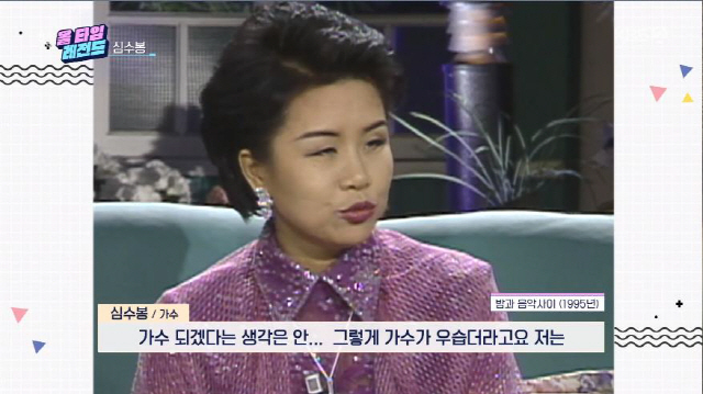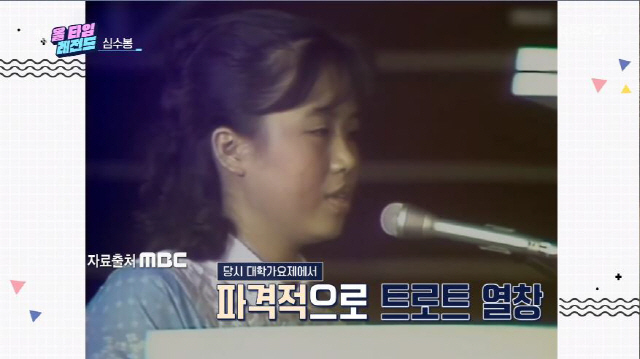김세희는 "제 친구들은 최근 주변에 트로트에 관심이 많다"면서 '트롯 전국체전'에 대해 언급했다. '올타임 레전드' 코너에는 심수봉이 소개됐다. 피아노가 귀했던 시절, 심수봉은 4대 국악 가문에서 태어나 4세 때부터 피아노를 배웠다.