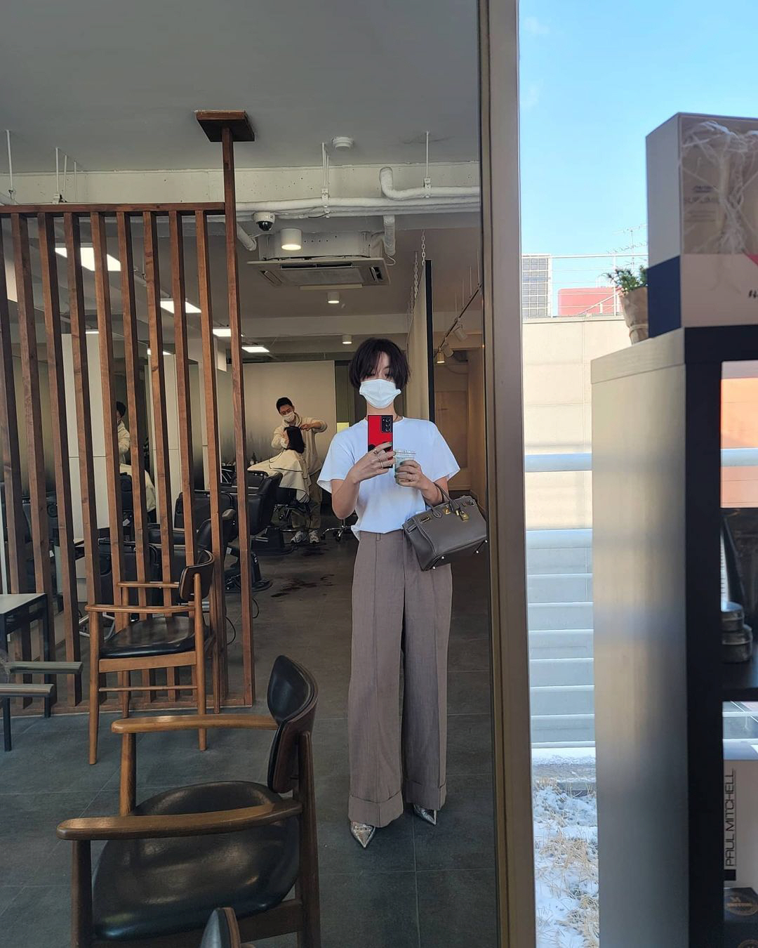 사진 속 황정음은 샵에서 거울을 보며 셀카를 찍고 있다. 와이드 팬츠에 흰색 반팔티를 입고 시크한 스타일을 선보인 황정음은 이전보다 한층 더 살이 빠진 모습으로 눈길을 끌었다.