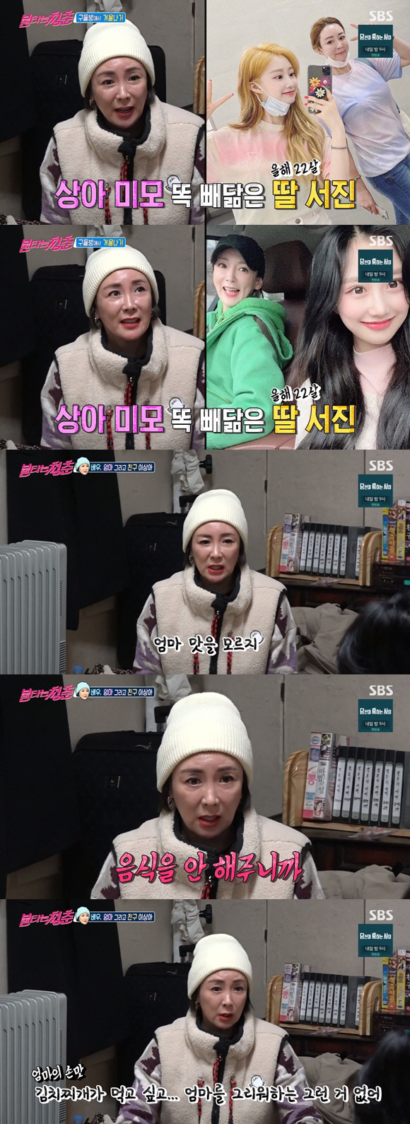 이상아는 자신이 '살림꾼'이라고 강조했다. 이에 최성국이 "딸이 제일 맛있어 하는 엄마표 음식이 무었이냐"고 묻자 이상아는 "엄마 맛을 모른다. 음식은 잘 안해준다. 우리 2세들은 엄마의 손맛을 그리워하지 않는다"고 단호하게 답해 웃음을 자아냈다. 이에 강문영은 "우리 딸은 내가 해준 스테이크가 제일 맛있다고 한다"고 말하며 다시 한번 이상아와 티격태격하며 웃음을 자아냈다.