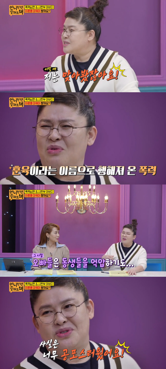 1남 3녀 중 셋째라는 이영자는 "그 시절 오빠들은 항상 동생들을 억압하지 않았나. 저도 오빠한테 많이 맞고 자랐다. 사실은 너무 공포스러웠다. 차라리 한 대 맞아서 아픈 것 보다 '어딜 때릴까?', '얼마나 아플까?', '어떻게 때릴까?' 그 분위기의 공포가 있었다. 공포 영화를 볼 때와 비슷하다. 막상 일어나는 일보다 그 소리, 쿵쾅거리는 거 음산한 거, 어두운 거. 맞는 순간보다 그게 더 공포인거다. 내가 맞아봐서 알지만 그 공포가 너무 무섭다"고 털어놨다. tokkig@sportschosun.com