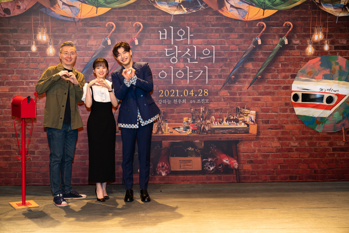 '비와 당신의 이야기'는 강하늘, 천우희, 그리고 강소라가 출연했고 '메이킹 패밀리' '수상한 고객들'의 조진모 감독이 메가폰을 잡았다. 오는 4월 28일 개봉한다.