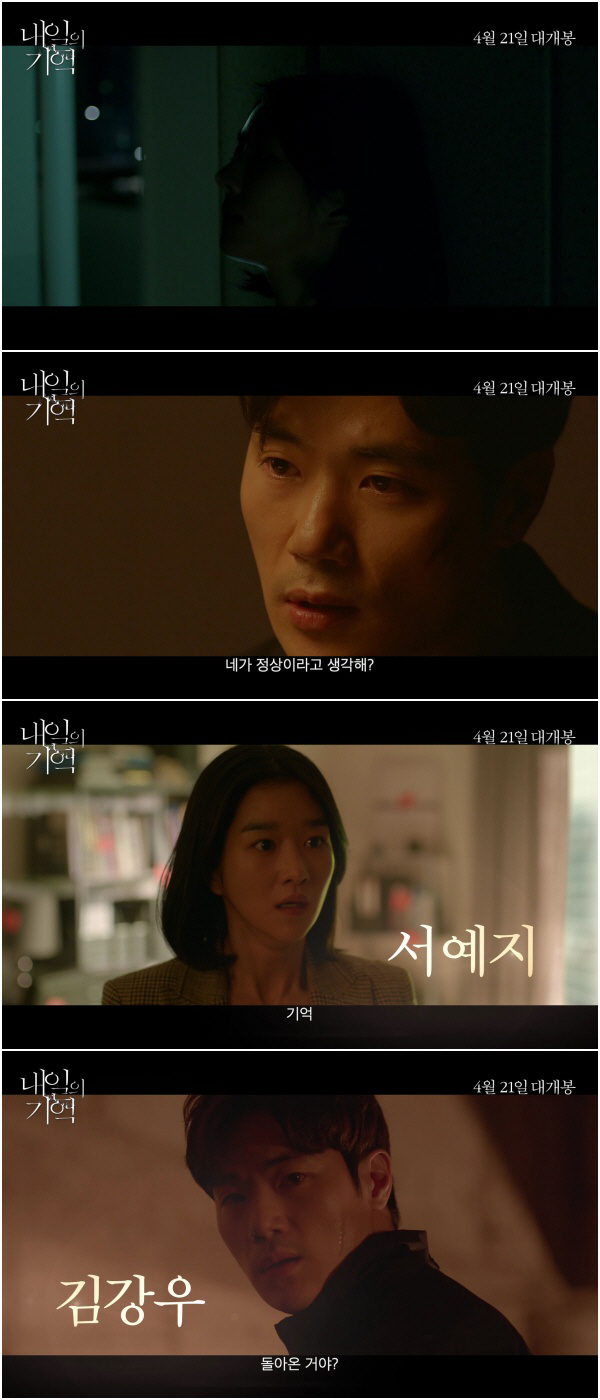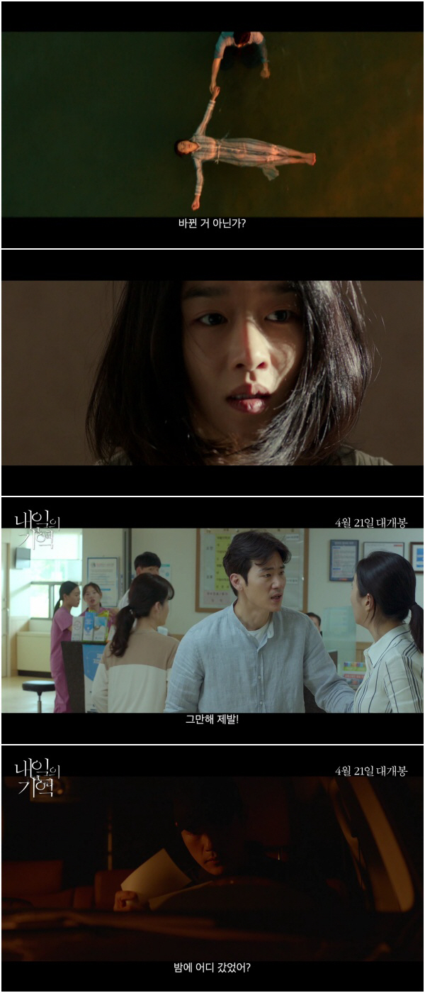 영화 '내일의 기억'은 기억을 잃고 미래가 보이기 시작한 수진이 혼란스러운 기억의 퍼즐을 맞춰갈수록 남편 지훈의 충격적인 실체를 마주하게 되는 미스터리 스릴러다. 4월 21일 개봉.