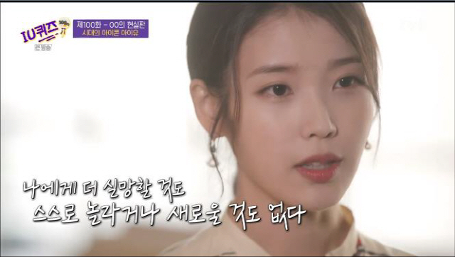 아이유는 '10년 뒤 아이유'에 대한 질문에 주저하면서도 "꼬장꼬장한 사람이 돼있을 것 같다. 제가 점점 꼬장꼬장해진단 느낌을 받는다. 일할 때 빡빡해진다. 39세에도 한창 일하고 있을 때라 지금보다 더 꼼꼼하게 일을 하고 있지 않을까"라고 미래를 내다봤다.