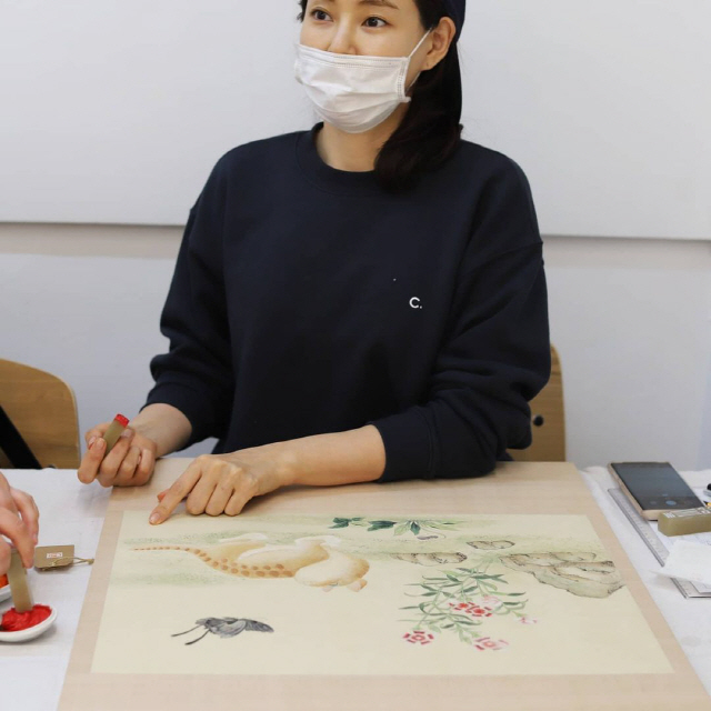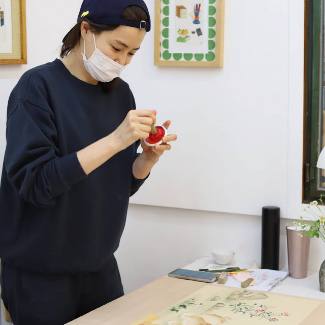 이하늬는 1일 자신의 인스타그램을 통해 "전각수업으로 드디어 내 그림에도 이름을! 도장을 팔 때도, 찍을 때도 숨도 조심히 쉬게 되는 긴장감이란~ 돌이 깎이는 사각사각 소리와 함께 차, 꽃, 다과, 그림. 이 시간을 어찌 사랑하지 않을 수가 있을까요"라는 글과 함께 여러 장의 사진을 게재했다. 공개된 사진 속에는 전각 수업을 듣고 있는 이하늬의 모습이 담겼다. 직접 만든 도장으로 자신의 그림에 서명을 남긴 이하늬는 '취미 부자' 다운 건강한 취미 생활을 공유했다. 특히 자연스러운 패션과 마스크 차림에도 가려지지 않는 이하늬의 미모가 돋보인다.