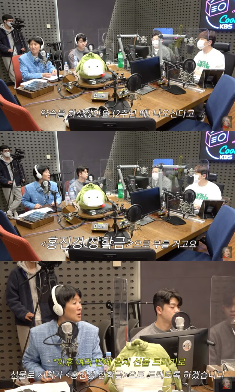 라디오 방송 중 홍진경의 2주년 축하 선물도 공개 됐다.