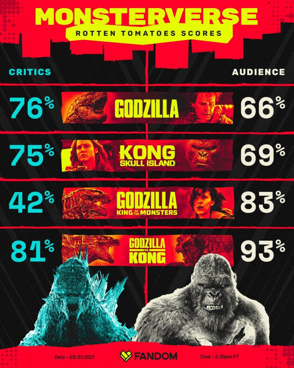 뿐만 아니라 로튼 토마토 평론가 지수 81%, 관객 지수 93%로 몬스터버스 시리즈 중 가장 높은 신선도로 영화적 완성도와 재미까지 사로잡았다. 국내 관객들 또한 포털 사이트 관객 평점 9점대 이상, 골든 에그 92%의 높은 점수로 영화에 대한 만족도를 증명하고 있다.