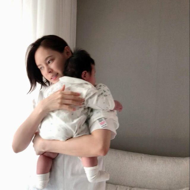 공개된 사진 속에는 아들을 안고 있는 구재이의 모습이 담겼다. 가녀린 팔뚝으로 아들을 안고 있는 구재이는 출산 3개월 만에 늘씬한 몸매로 돌아와 시선을 모은다. 특히 100일도 채 되지 않은 구재이의 아들은 똘망똘망한 눈빛으로 카메라를 응시하고 있어 귀여움을 더했다.