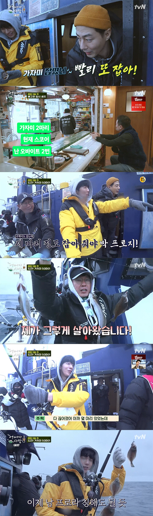 이때 박병은과 남주혁의 낚시대에는 엄청난 양의 가자미가 달려 올라오기 시작했다. 박병은은 신나하며 "여러분 이거죠. 트리플 샷의 귀재다. 악조건을 이겨내야한다"라며 신나게 낚시를 이어갔다.