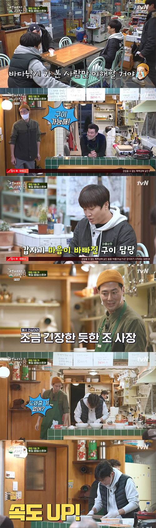 본격적인 저녁 장사가 시작됐다. 박병은과 조인성, 신승환은 각자 맡은 일을 일사분란하게 처리했다. 특히 박병은은 뼈째 회도 능숙하게 손질을 하는 모습을 보였다.