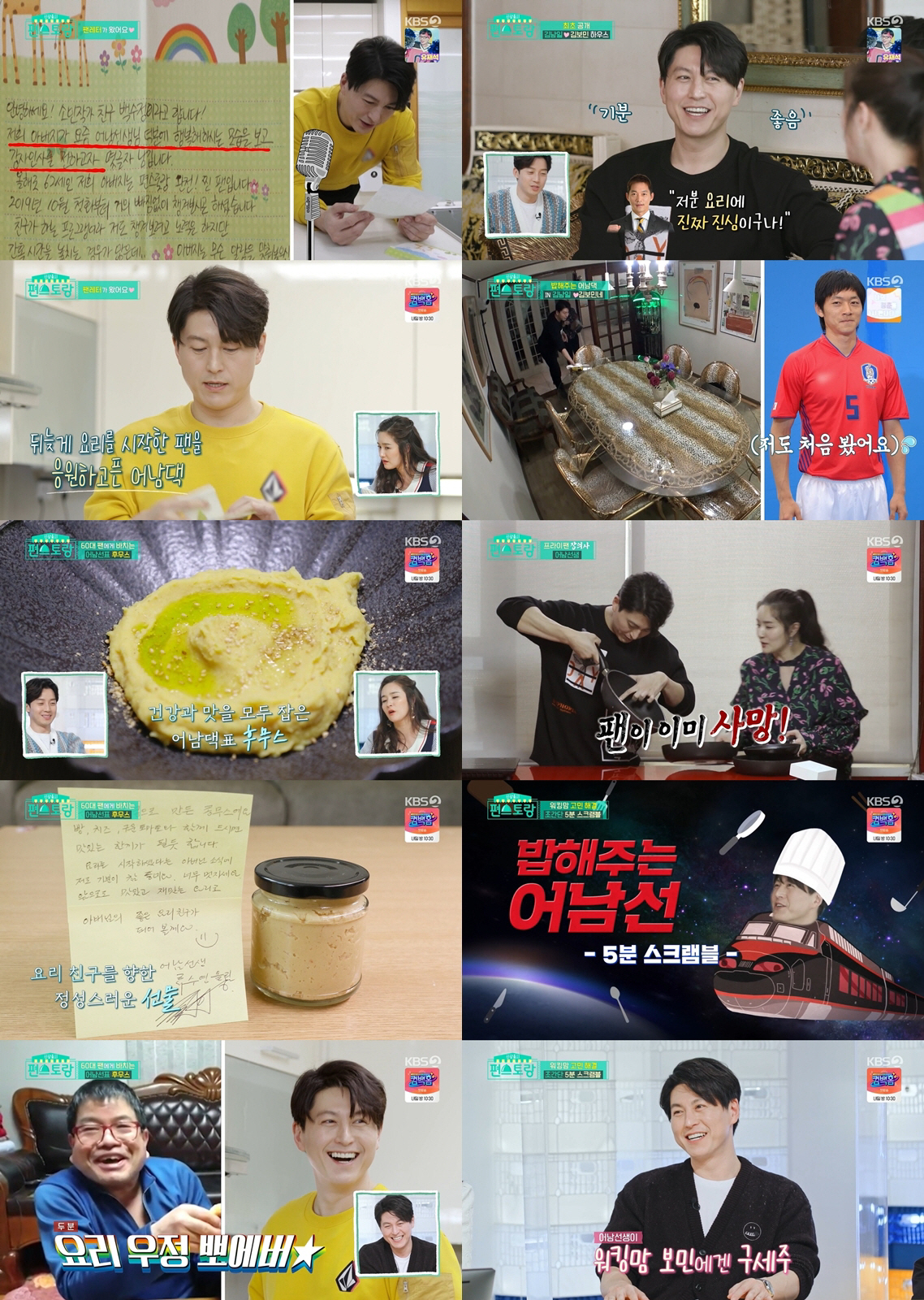 이후 류수영은 육수를 내는데 필요한 재료를 꼼꼼히 챙겨 집을 나섰다. 그가 향한 곳은 걸어서 5분 거리에 위치한 김남일-김보민 부부의 집. 이웃사촌인 류수영과 김보민은 앞서 슈퍼마켓에서 만나 함께 장을 보기도 했다. 당시 김보민은 류수영이 알려준 레시피로 직접 요리해 후기를 남겼다.