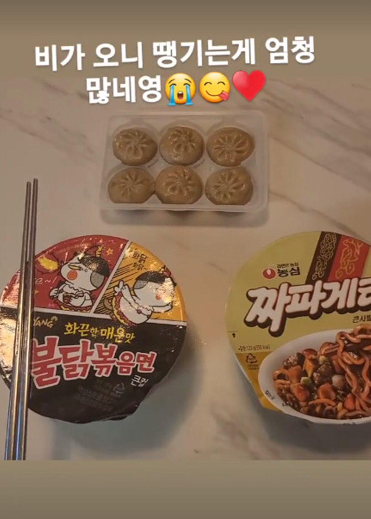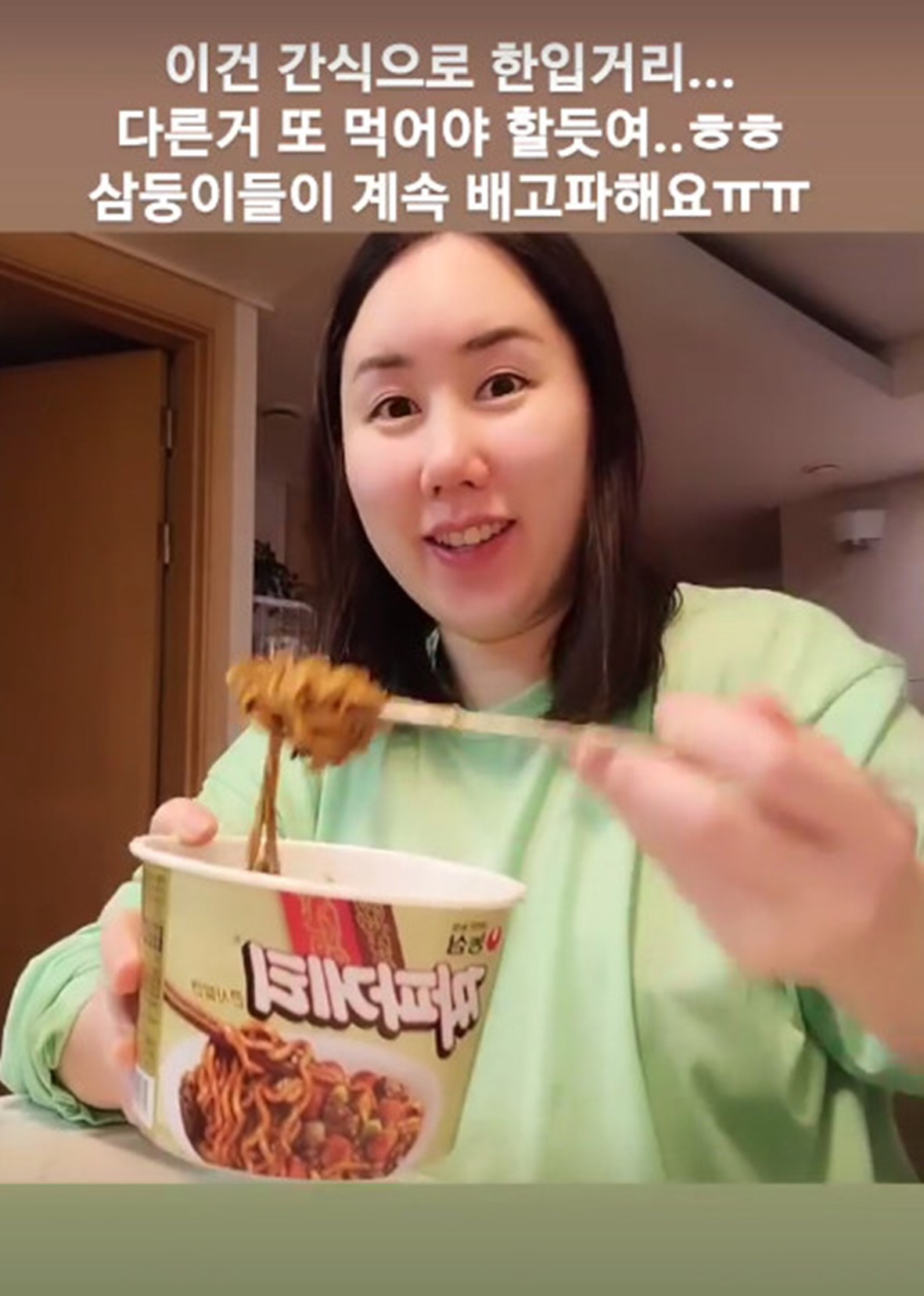 황신영은 3일 자신의 인스타그램 스토리를 통해 "비가 오니 당기는 게 엄청 많네요"라는 글과 함께 한 장의 사진을 게재했다. 공개된 사진 속에는 황신영이 먹으려고 준비한 컵라면 두 개와 만두 사진이 담겼다. 이어 황신영은 컵라면을 먹는 영상과 함께 "이건 간식으로 한입거리..다른 거 또 먹어야 할 듯요..ㅎㅎ삼둥이들이 계속 배고파해요ㅠㅠ"라고 글을 남겼다. 임신 후 폭풍 먹방을 펼치는 황신영은 이후 시리얼을 먹으며 마무리했다. 황신영의 건강한 근황이 돋보인다.