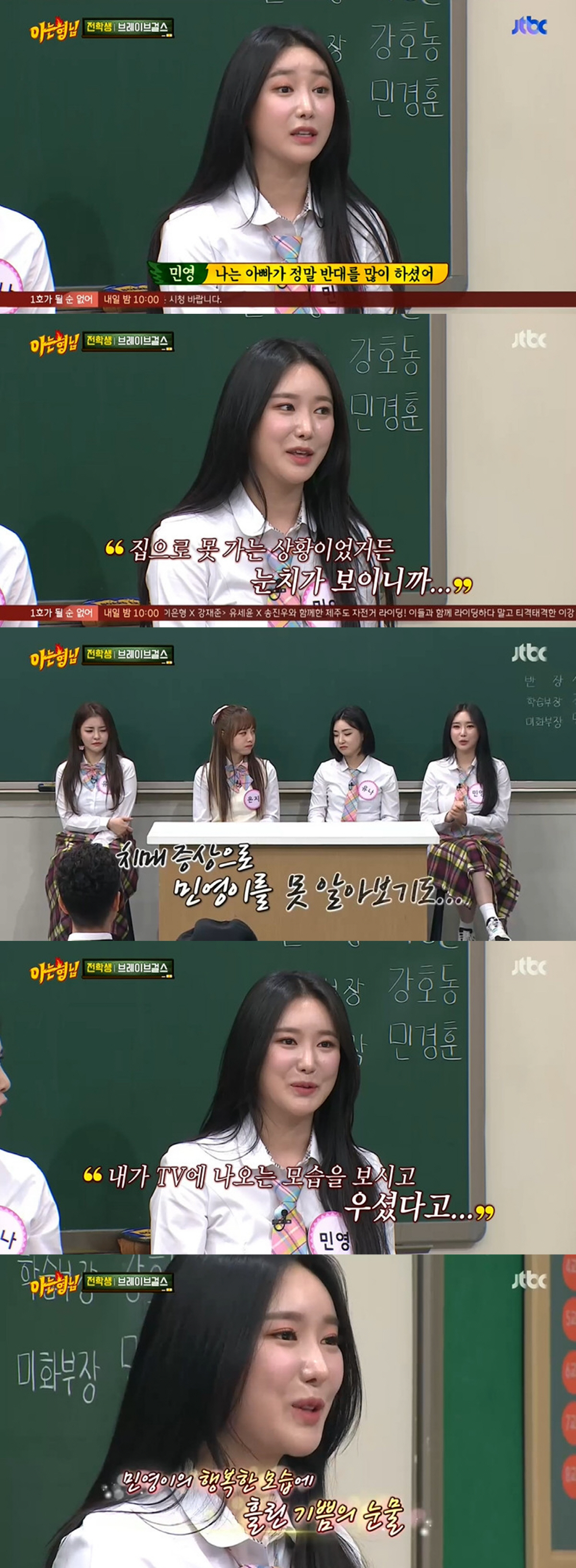 특히 가족의 반대를 딛고 데뷔한 민영은 역주행 이후 '자랑스러운 딸'이 됐다. 민영은 "아빠가 정말 반대를 많이 했다. 숙소에서도 집으로 못 가는 상황이었다. 눈치가 보여서. 근데 이번 역주행하고 나서 너무 자랑스러운 딸이라고 전화를 주셨다.