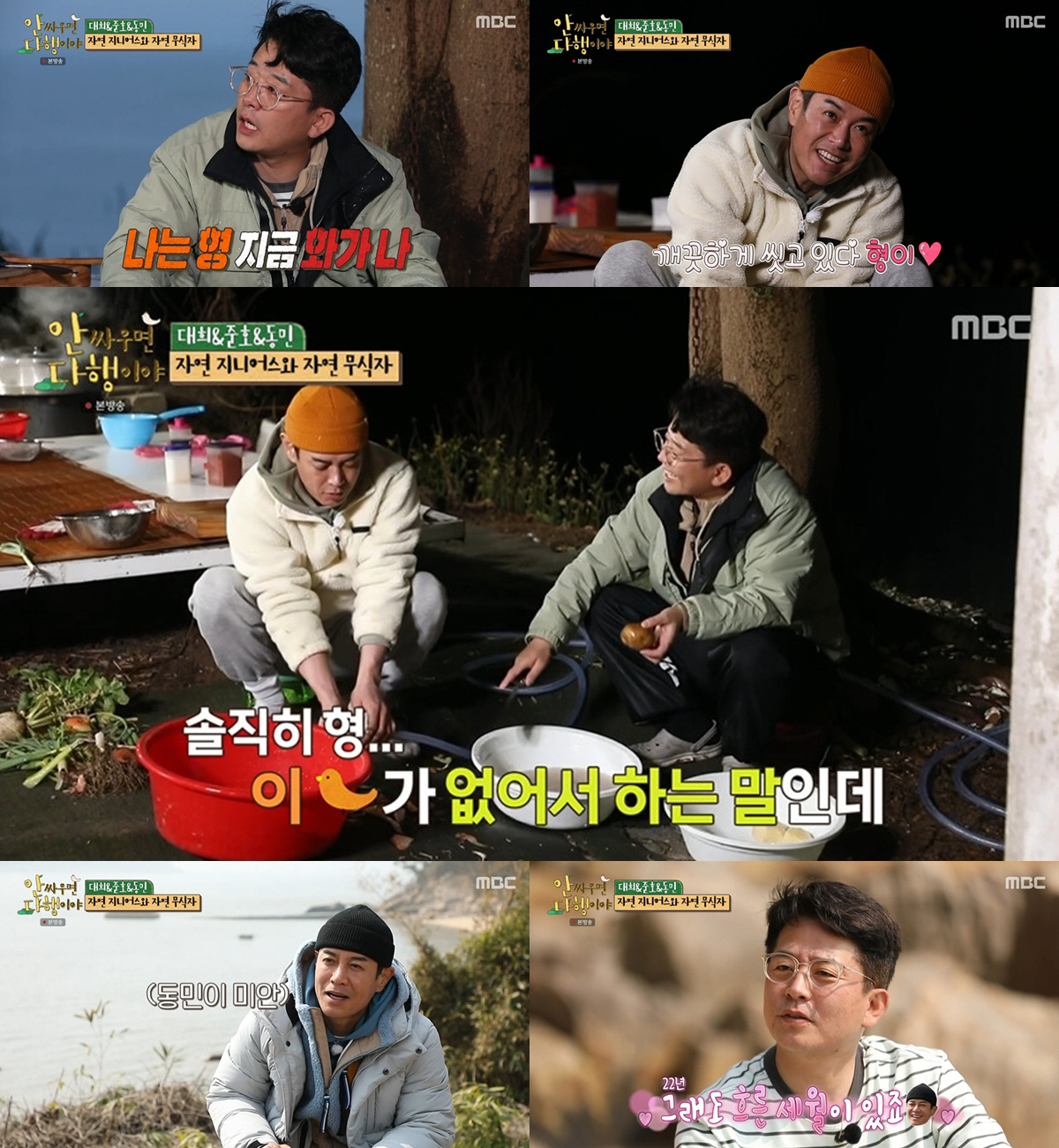 그런가 하면 티격태격하기 바빴던 두 남자가 장동민 몰래 작당모의를 하며 환상의 쿵짝을 자랑했다. 쉴 틈 없이 심부름을 시키는 장동민에 대한 불만을 표출하며 한마음 한뜻이 된 것.