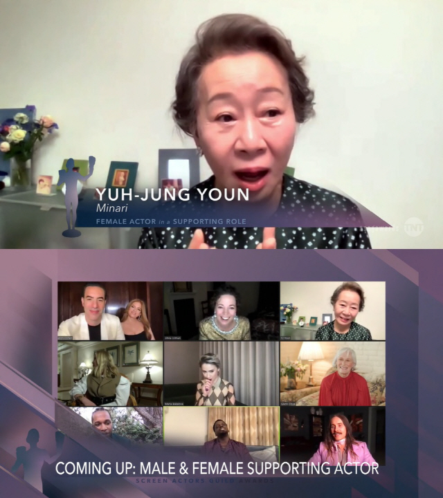 드라마틱한 영화 속 한 장면과도 같았던 윤여정의 미국배우조합상 수상. 미국 매체 할리우드 리포트는 윤여정을 향해 "미국배우조합상은 16만명에 가까운 회원들이 선정하는 상인데 이 회원들은 그해 아카데미 시상식에 투표권이 있는 전미영화예술과학아카데미(AMPAS) 회원이기도 하다"며 "결과적으로 미국배우조합상을 수상한 윤여정은 올해 아카데미 여우조연상의 입지를 더욱 굳건하게 만들었다"고 아카데미 수상을 유력하게 여겼다.