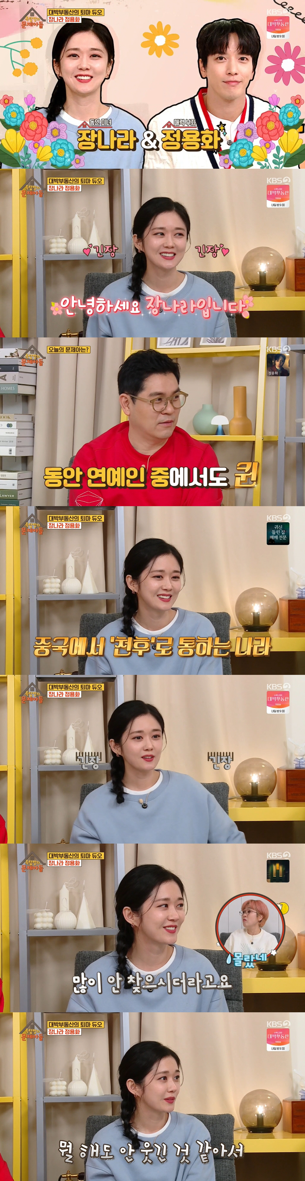 이날 김용만은 장나라에 대해 "연예계 최강 동안, 연예계 동안 중에서도 퀸"이라고 소개했다. 장나라를 본 MC들은 "더 어려졌다"며 놀랐다.