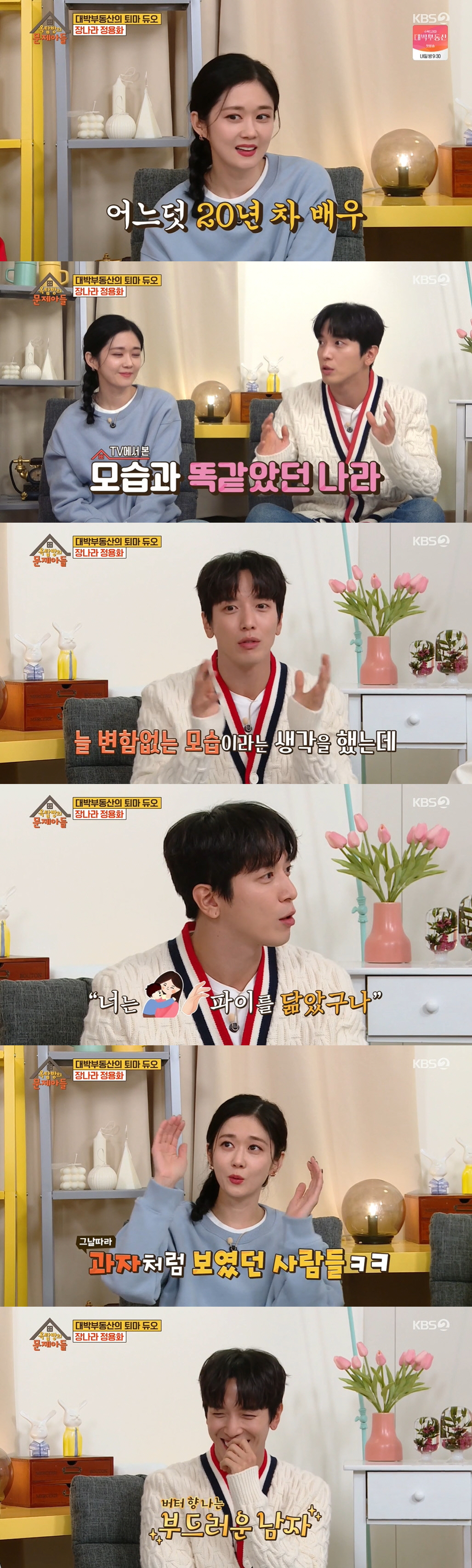 정용화는 장나라의 첫 인상에 대해 "어렸을 때 TV에서 봤던 모습 그대로라서 놀랐다"면서 "첫 만남에서 '너는 엄마 손 파이를 닮았구나'라고 하셨다"고 해 웃음을 안겼다.