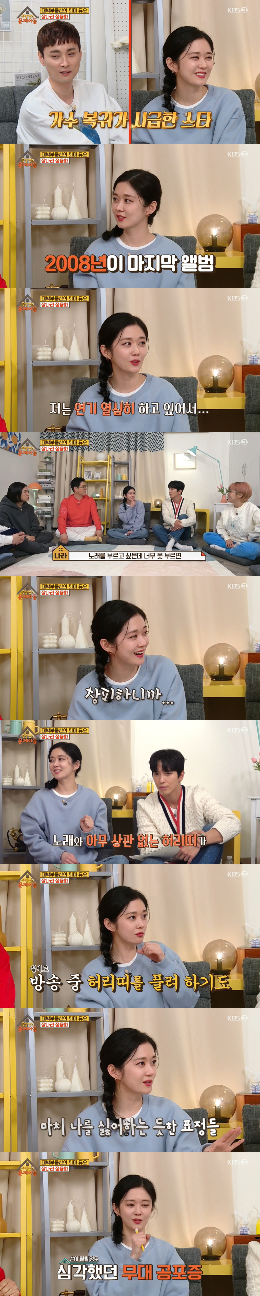 장나라는 "10년 전에 앨범을 냈다"면서 신곡 소식을 묻는 질문에 "연기 열심히 하고 있다"고 했다. 이때 '노래 레슨을 받고 있다'는 장나라는 "집에서 노래를 하고 싶은데 집이 아파트라서 연습을 못 한다"면서 "노래를 너무 부르고 싶은데 못하면 너무 창피하니까. 레슨을 받으면 집에서 자신감 있게 부를 수 있지 않을까라고 생각이 들더라"고 했다.