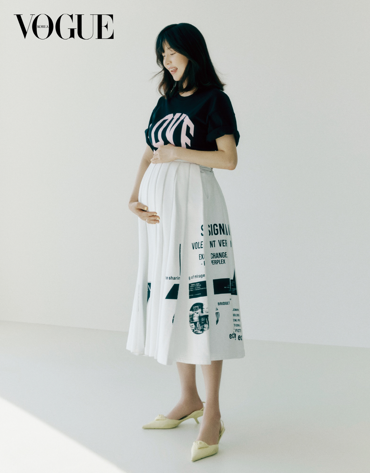 화보 속 한지혜는 이번 캠페인의 'LOVE' 티셔츠와 롱 스커트를 매칭해 편안하면서도 우아한 분위기를 연출했다. 따뜻한 미소와 함께 내추럴한 헤어 스타일링과 투명한 메이크업에도 배우 아우라를 물씬 풍기며 여전한 미모를 뽐낸 것. 특히, 배를 살짝 감싸고 있는 손은 아름다운 D라인을 부각시키며 시선을 사로잡는다.