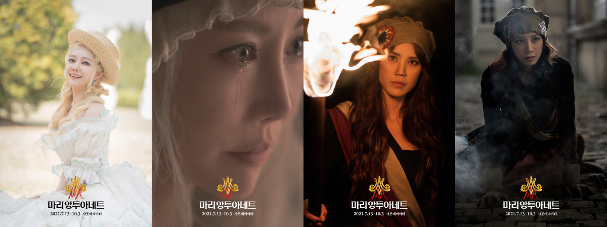 가장 먼저 김소현은 누구보다 행복한 미소로, 프랑스의 왕비 '마리 앙투아네트'의 가장 행복한 때를 연상시켜 보는 이들의 시선을 사로잡는다. 같은 역의 김소향은 프랑스 혁명 직후의 '마리 앙투아네트'의 모습으로, 한때는 프랑스의 왕비였지만 단두대의 올라 생을 마감해야만 했던 그녀의 드라마틱한 삶을 고스란히 담아냈다. 이어 김연지는 결연한 의지를 담은 채로 타오르는 횃불을 들으며 프랑스 시민들을 거리로 이끄는 '마그리드 아르노'의 압도적인 아우라를 발산한다. 정유지 또한 텅빈 거리에 주저앉아 있는 강렬한 눈빛을 보여주며 진실과 정의, 이상향을 찾기 위한 '마그리드 아르노'의 비장함을 드러냈다.