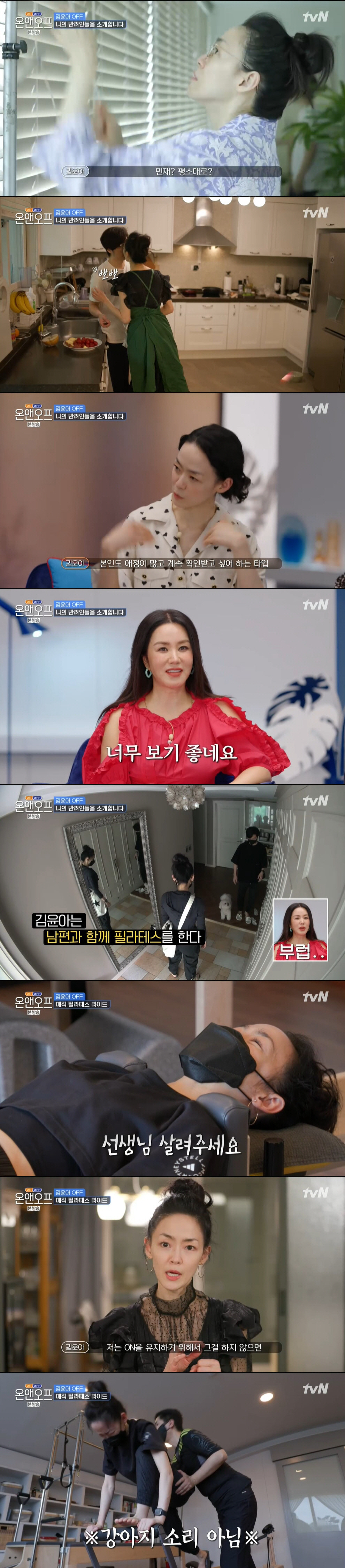 운동도 함께하는 부부의 모습에 엄정화는 "말도 안되는 부부다"며 놀랐다. 필라테스 학원을 찾은 김윤아는 "운동을 하는 게 OFF 인 것 같지만 ON을 유지하기 위해서 운동을 하지 않으면 한 방에 훅 간다는 걸 알고 있다"면서 "두 번 훅 간다음에 알게 됐다"고 했다.