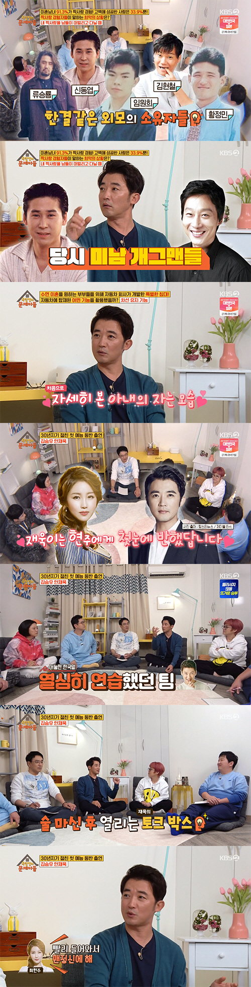 끝으로 김승우는 "갱년기가 왔을 당시 아내 덕분에 극복할 수 있었다"며 아내에 대한 애정을 과시했다. 김승우는 "처음 노안이 왔을 때 받아들이는 게 힘들었다. '아이들은 아직 어린데 벌써 노화가 시작됐구나'라는 생각에 혼자 눈물까지 흘렸다"고 고백했다.