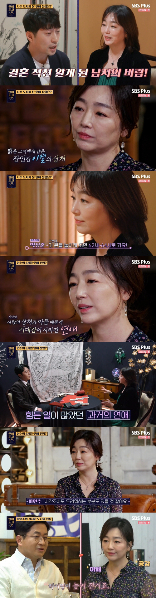 타로 전문가는 끝으로 이연수에게 어울리는 상대에 대해 "모든 걸 맞추고 케어할 수 있는 남자"라며 사주와 비슷한 결과를 내놨다. 이연수는 "과거에는 일에 소홀하고 사랑에 푹 빠졌다. 그러다 보니까 보상 심리가 있었다. 나도 받고 싶으니까 사랑을 갈구했다. 근데 그러면서 더 내려놓게 됐다"고 고백했다. 이를 본 MC들은 "결혼을 불안해하는 거 같다"며 안타까워했고, 이연수는 "아무래도 그런 경험이 있고 트라우마가 있으니까 시작조차도 두려워하는 부분도 있을 거 같다"고 말했다.