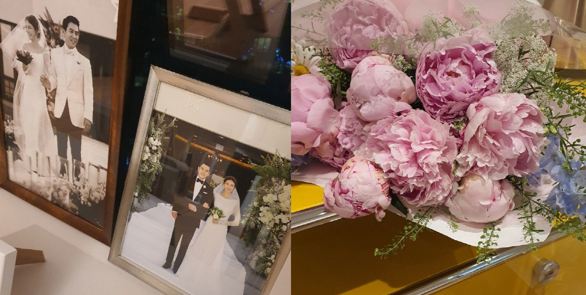 차예련은 "소리 없는 사랑꾼"이라며 "동네에 작약 파는 꽃집이 없어서 한시간 동안 작약 찾아 돌아 다니다 결국 구해서 사다 놓았다는 남편. 고마워♥"라고 덧붙이며 애정을 드러냈다.
