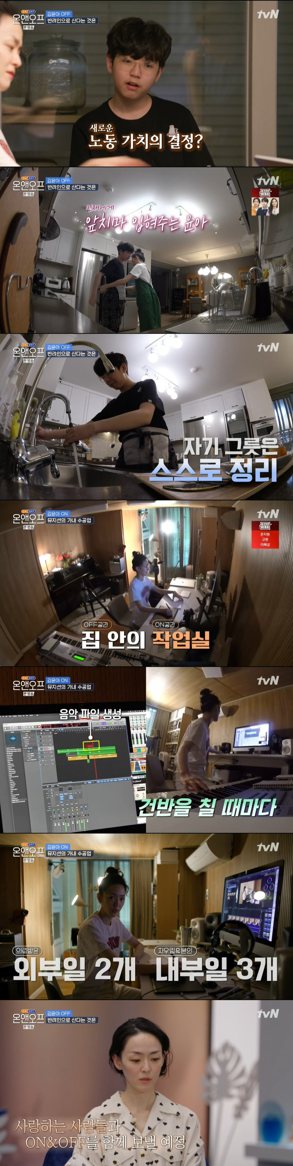 김윤아의 작업실도 공개됐다. 자우림 노래 대다수를 직접 작사·작곡할 정도로 남다른 음악적 열정을 가진 김윤아. 그는 "외부일 2개, 내부일 3개를 동시에 진행하고 있다"며 곡 작업에 매진하는 등 작곡가 김윤아가 보여주는 프로페셔널한 OFF였다. 뿐만 아니라 아들에게 올바른 경제 관념을 교육하기 위한 방법까지 전하는 등 엄마로서도 완벽한 김윤아의 모습까지 한 순간도 눈을 뗄 수 없게 했다