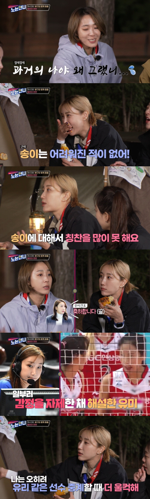 한유미는 "용돈 줄 때 '나중에 나 어려우면 도와줘야 한다'고 했다. 근데 (송이는) 어려워진 적이 없다"며 19년째 프로선수로 활약 중인 동생을 자랑했다.
