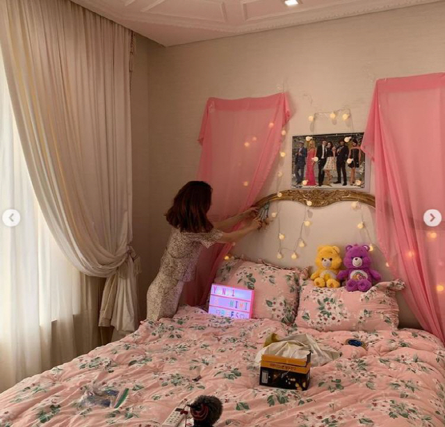 사진에는 그가 운영하는 유튜브 촬영을 위해 침실을 자신의 취향으로 꾸민 함연지의 모습이 담겼다.