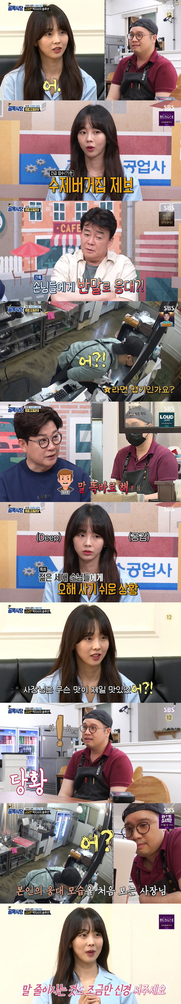 [스포츠조선닷컴 정유나 기자] '백종원의 골목식당' 금새록이 반말 응대를 하는 '수제버거집'에 '손님 응대 강의'를 나섰다.