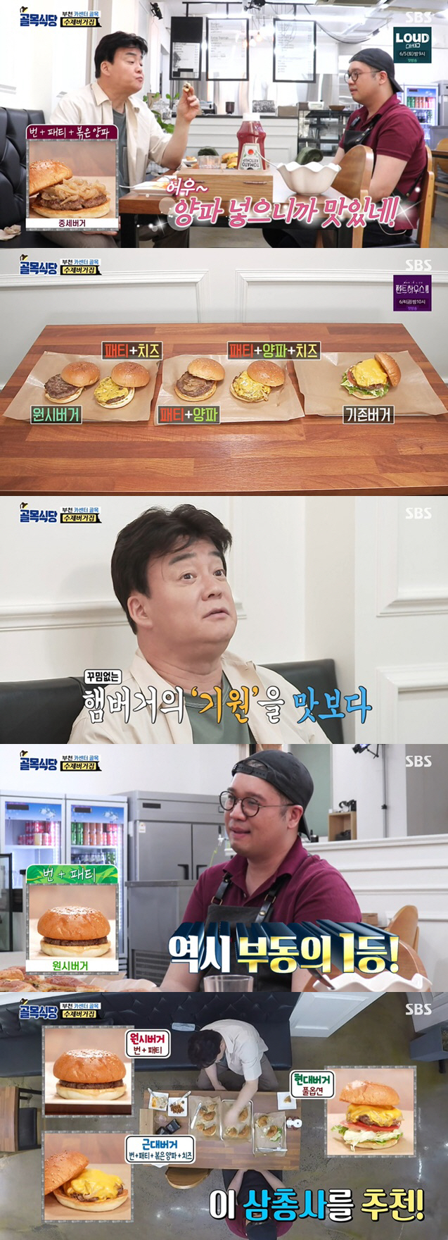 이후 수제버거집에 방문한 백종원은 지난주 탄생한 원시버거에 재료를 하나씩 추가해 시식하며 '베스트 조합' 찾기에 나섰다. 사장님이 준비한 4가지 버거에 케첩까지 발라 꼼꼼히 맛보던 백종원은 번에 패티만 들어간 햄버거에 "역시 1등이다. 햄버거의 기원을 맛보는것 같다"며 극찬했다. 백종원과 사장님은 번에 패티만 들어간 버거와 풀옵션 버거, 그리고 번, 패티, 볶은양파, 치즈가 들어간 버거를 최종 판매 버거 3종으로 확정했다.