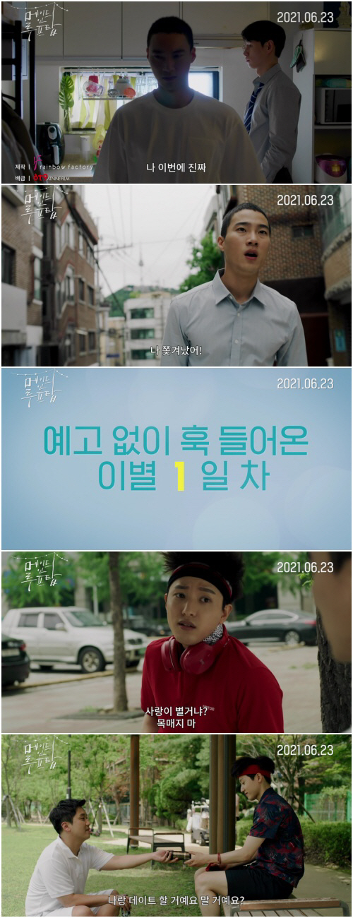 이번에 공개된 메인 예고편은 확연히 대비되는 두 주인공, 이별 1일 차 하늘(이홍내)과 썸 1일 차 봉식(정휘)의 유쾌 발랄한 사랑 이야기로 단숨에 시선을 사로잡는다. "나 이번에 진짜 헤어질 거야"라며 수없이 날린 가짜 이별 통보가 진짜가 되고, 당황한 얼굴로 여행 캐리어 하나만 달랑 끈 채 애인의 집에서 쫓겨나는 하늘의 모습이 시작부터 웃음을 유발한다. 범상치 않은 독특한 스타일로 등장한 봉식이 "전 연애 안 해요"라는 대사가 무색하게 바로 이어서 민호(곽민규)와 썸을 타기 시작하고 문자 한 통에도 미소를 감추지 못하는 모습을 보이는 등 귀여운 매력을 한껏 드러낸다.