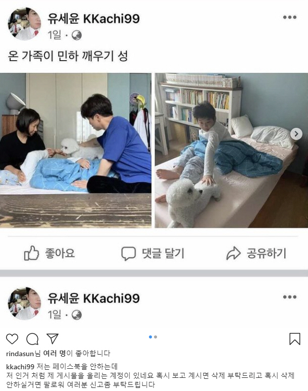 실제 유세윤이 운영하는 페이스북처럼 보여 주의가 필요하다.