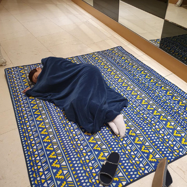 장영란은 1일 자신의 인스타그램을 통해 "엄마는 새벽촬영 중. 대기 시간을 활용하는 법. 돗자리 최고"라는 글과 함께 여러 장의 사진을 게재했다.