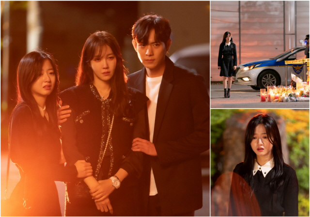 이와 관련 이지아, 김현수, 김영대가 슬픔 속에서 우두커니 서있는 '망연자실 눈빛' 현장이 이목을 집중시키고 있다. 극중 심수련, 배로나(김현수), 주석훈(김영대)이 로건리 차 폭발사고 현장에서 추모 공간을 바라보고 있는 장면. 먼저 검은색 복장을 갖춰 입고 로건리의 차 폭발사고 현장에 들어선 배로나는 폴리스라인 안에 마련된 로건리 추모 공간을 바라보고, 이내 눈물이 그렁한 채로 허망한 표정을 드러낸다.