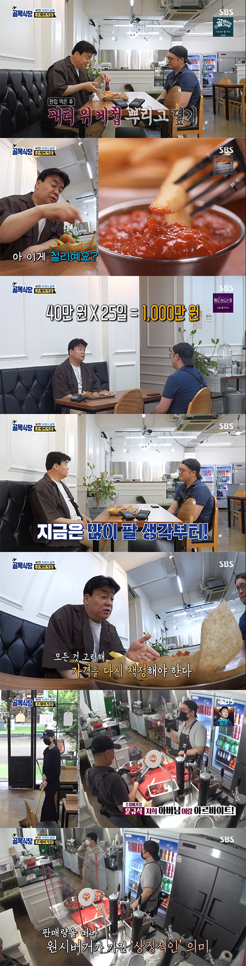 또 하나의 문제가 있었다. 사장님이 손목터널증후군 때문에 혼자서는 많은 양 판매가 쉽지 않은 상황. 백종원은 "홀로 운영한다는 편견을 버리고 직원과 함께 분담하는게 좋다"고 조언했다.