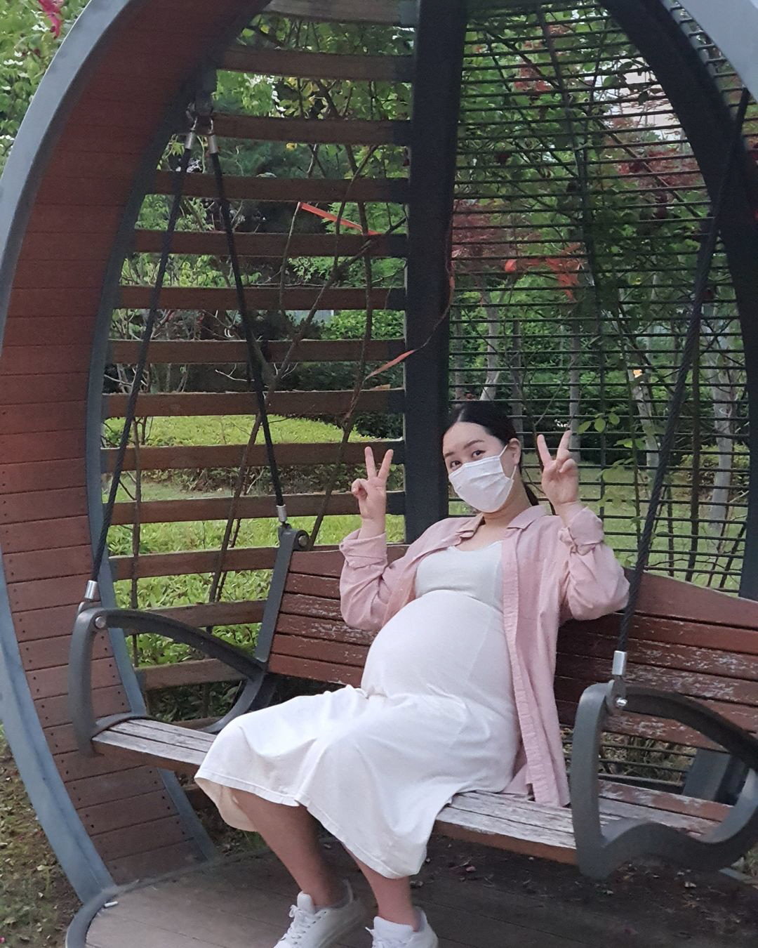 또한 그는 "밥 먹고 공원 산책도 했는데 지나가는 사람들마다 곧 출산이냐며 안 힘드냐고 여쭤보시는 어르신분들이 많았어요"라며 "바로 '하나도 안 힘들어요' 이랬어요"라며 행복한 미소를 지었다.