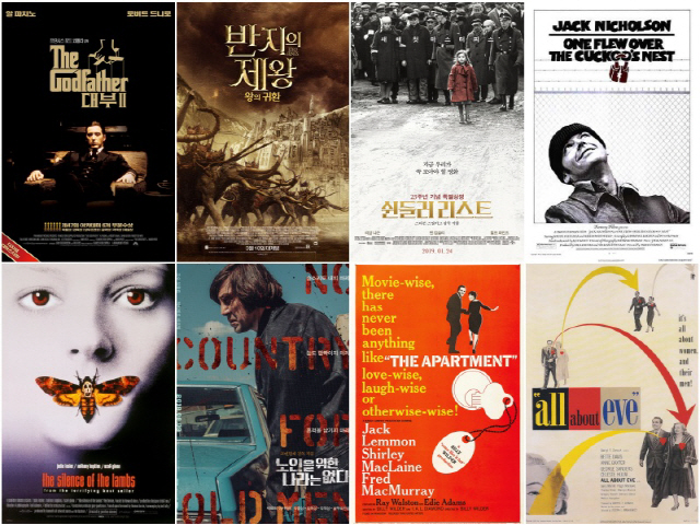 8위는 2007년 개봉해 제80회 아카데미 시상식에서 작품상을 비롯해 4개 부문을 거머쥔 코엔 형제 감독의 '노인을 위한 나라는 없다'가 차지했고, 제33회 시상식에서 5개 부문에서 수상한 빌리 와일더 감독의 1960년작 '아파트 열쇠를 빌려드립니다'가 9위에 랭크됐다. 10위는 제23회 아카데미 작품상 수상작인 1950년에 개봉한 고전 걸작 '이브의 모든 것'(조셉 L. 맨키위즈 감독)이다.
