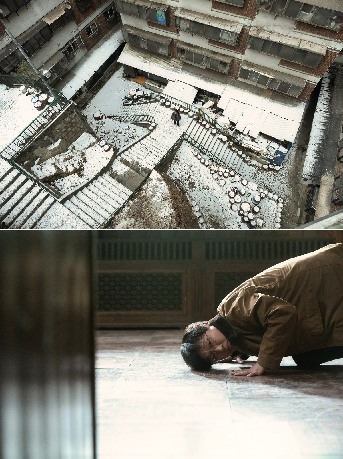 먼저 첫 번째 비하인드는 '괴기맨숀'의 로케이션으로, 낡은 아파트 광림맨숀은 영화 속 또 다른 주인공이라고 할 수 있을 만큼 강렬한 인상을 남기며 1차 포스터에서부터 화제를 모은 바 있다. 조바른 감독은 긴 시간 장소 헌팅을 진행하며 적합한 배경을 찾기 위해 노력했다고 밝히며, 배경이 된 아파트에 대해 "마치 건물이 포위망을 형성하듯 미로 같은 모습을 한 것이 인상적이었고 광림맨숀에 제격이라고 생각했다"고 전했다.
