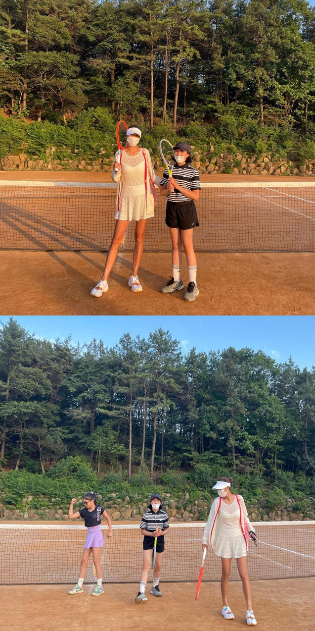 공개된 사진에는 엄마 전미라가 운영 중인 테니스 아카데미를 찾은 두 딸의 모습이 담겨있다.