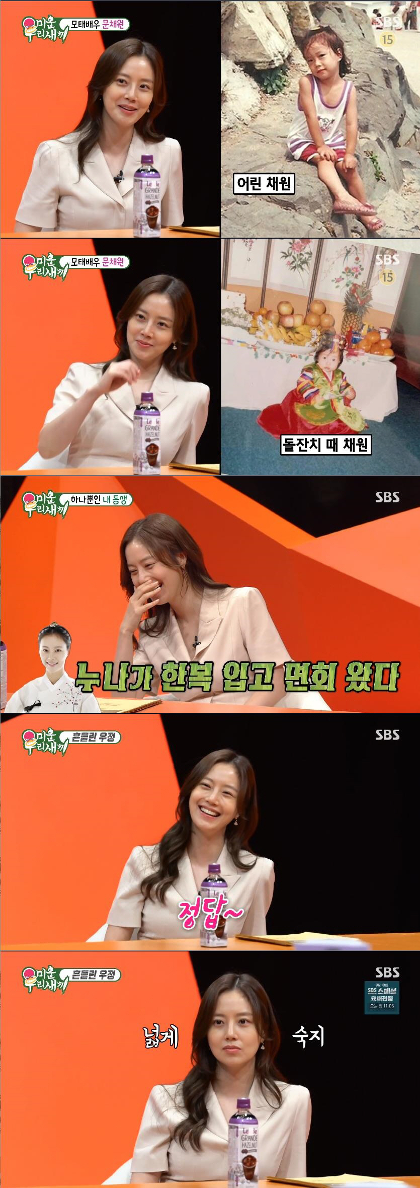 신동엽은 "군대에 있을 때 누나가 '문채원'이라 하면 좋지 않냐"라 질문했다. 문채원은 "나도 그렇게 해주고 싶었는데 동생이 거부했다. 많이, 강하게 거부하더라"라고 전했다.