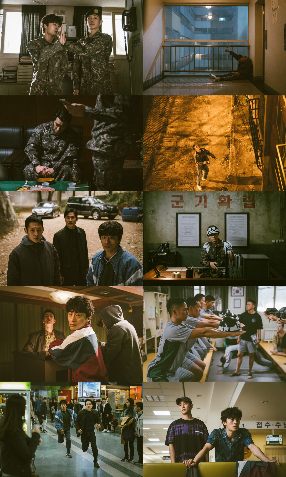 탈영병들을 잡는 군무 이탈 체포조(D.P.) 준호와 호열이 다양한 사연을 가진 이들을 쫓으며 미처 알지 못했던 현실을 마주하는 이야기 를 담은 넷플릭스 시리즈 'D.P.'가 보도스틸을 공개했다.