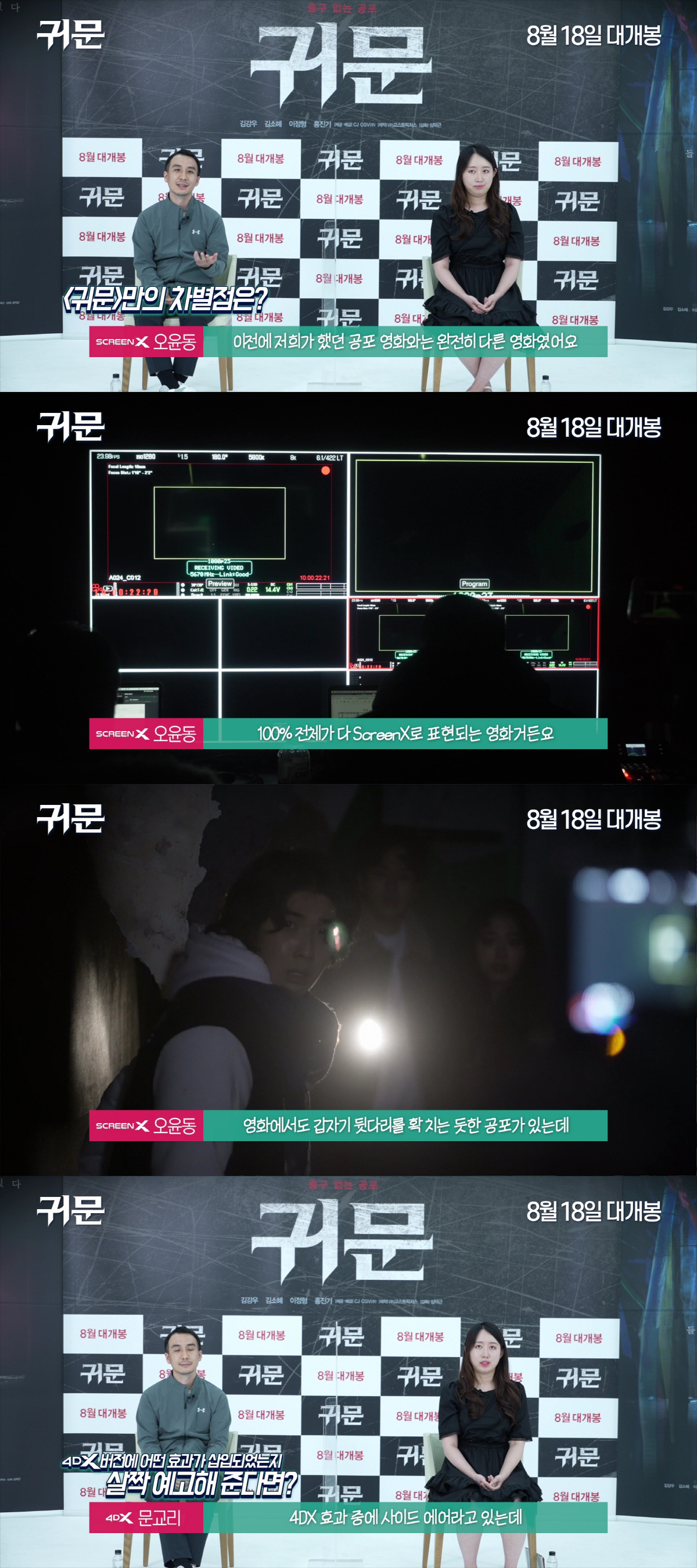 이어 4DX 담당자도 '귀문'의 4DX 버전의 차별점에 대해 "폐수련원이란 공간의 설정을 따라 그 건물에서 느낄 수 있는 공간의 분위기를 연출했다. 작은 소리에도 반응하는 민감함, 섬세함을 환경 효과와 모션 효과로 디테일하게 표현했다"고 궁금증을 더했다.