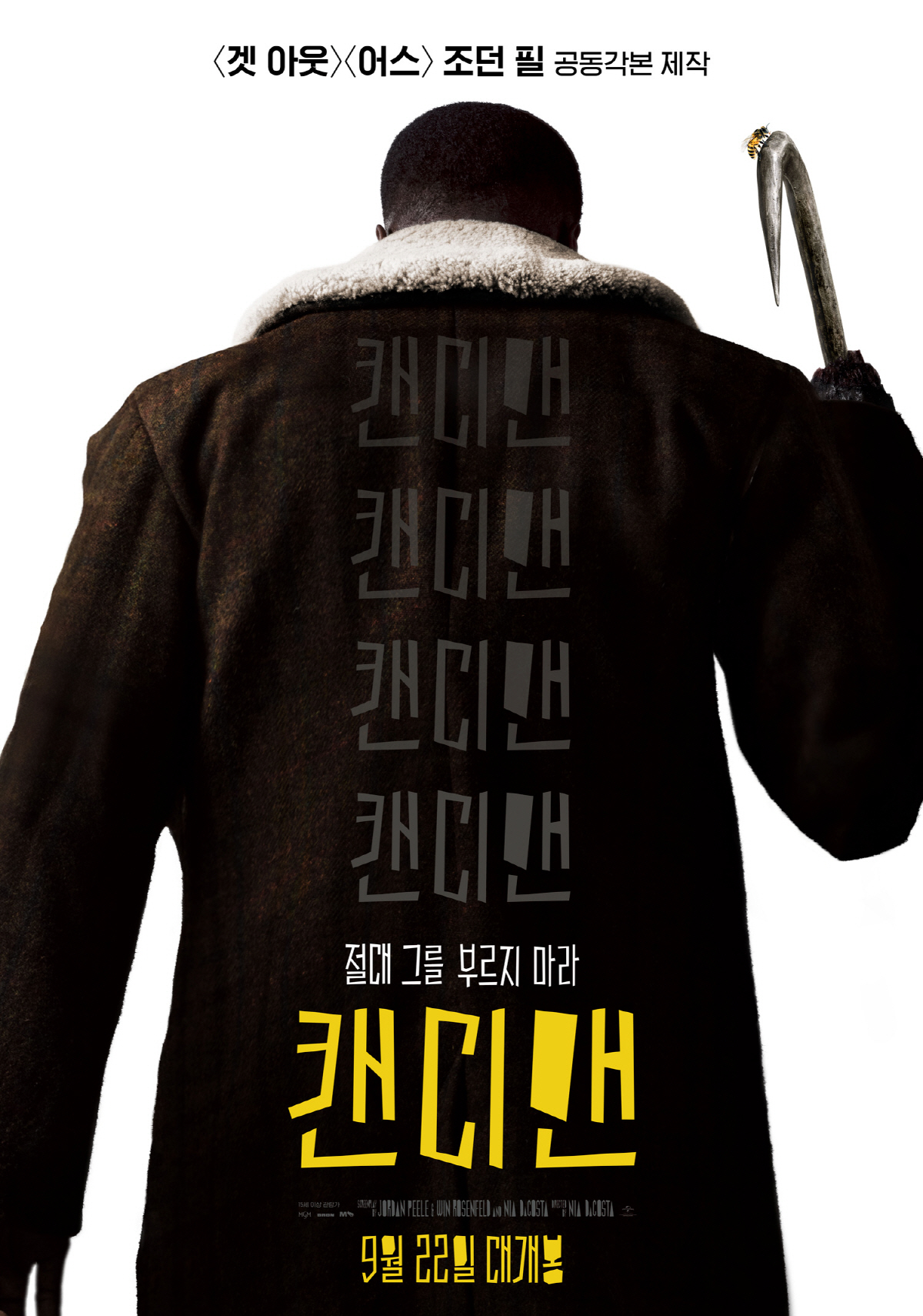 공개된 포스터는 미스터리로 가득한 존재 캔디맨의 뒷모습을 담아 호기심을 자극한다. 먼저 캔디맨의 이름이 4번 불리자 "절대 그를 부르지 마라"는 단호한 경고의 메시지가 등장하며 마지막 다섯 번째 이름을 불렀을 때 어떤 일이 벌어질지 궁금하게 만든다. 이어 캔디맨의 오른쪽 손을 차지하고 있는 갈고리는 캔디맨의 이름을 다섯 번 부르고 마침내 그가 나타났을 때 믿고 싶지 않은 일이 벌어질 것임을 암시해 더욱 기대를 높인다.