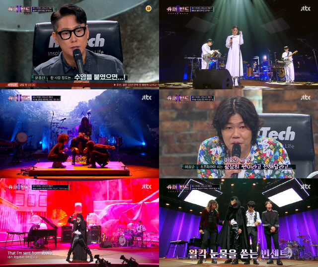 지난 23일 밤 방송된 JTBC '슈퍼밴드2'(연출 김형중, 김선형) 8회에서 본선 3라운드 '조별 순위 쟁탈전'이 그려졌다. A조와 B조에서 각각 1위를 기록한 두 팀만이 전원 생존할 수 있는 가운데, 이날 A조 정석훈 팀, 황현조 팀, 박다울 팀, 린지 팀, 윌리K 팀, 황린 팀의 무대가 공개됐다.