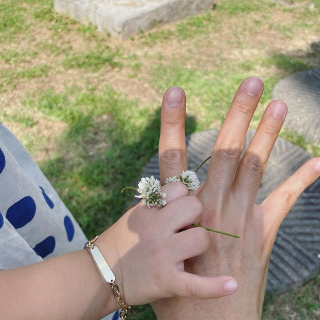 한채아는 24일 자신의 인스타그램에 "커플 꽃반지. 내 손 참 많이 그을렸네. 지난 여름 방학"이라는 글과 함께 사진을 게재했다.